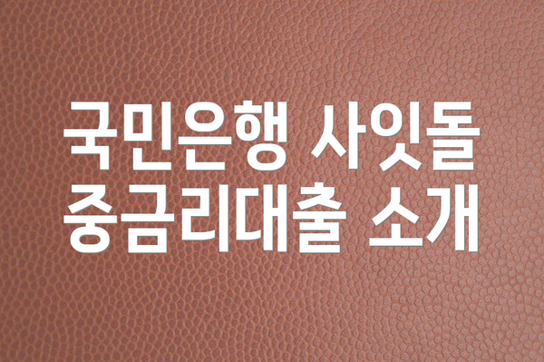 ✅ 국민은행 사잇돌 중금리대출의 모든 조건을 지금 바로 알아보세요.