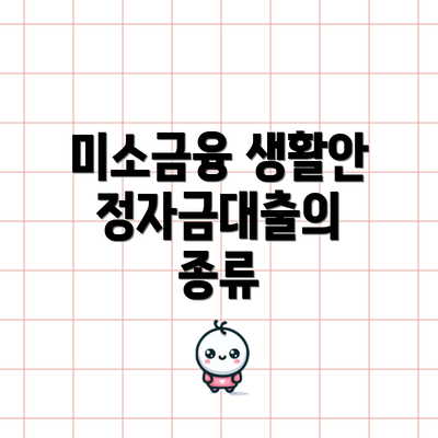 미소금융 생활안정자금대출은 여러 종류로 나뉘어 있어, 각기 다른 필요에 맞추어 대출을 받을 수 있습니다. 주요 종류는 다음과 같아요: