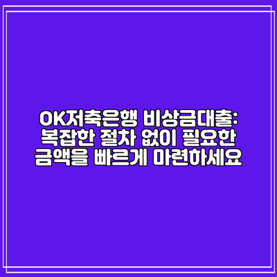 OK저축은행 비상금대출: 복잡한 절차 없이 필요한 금액을 빠르게 마련하세요